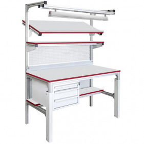 Основу этого промышленного верстака составляет легкий, но прочный анодированный алюминиевый профиль с сечением 45х45 мм.
