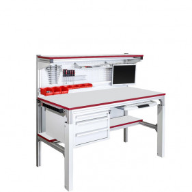 Промышленный верстак СПН-КП, сконструированный на основе прочного анодированного алюминиевого профиля сечением 45х45 мм, представляет собой гибкое и современное решение для оснащения производств.