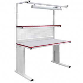 Модульная структура стола предоставляет возможность установки множества дополнительных элементов. К ним относятся подвесные тумбы, перфорированные панели, электропанели, крепёжные планки для лотков, полки для оборудования и приборов, нижняя полка для приборов, освещение рабочей поверхности, угловые модули, крючки для инструментов и другие аксессуары, которые могут быть полезны на рабочем месте.