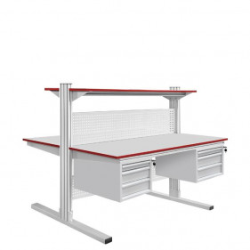 Главная ценность данной модели заключается в ее сдвоенной архитектуре. Такое инженерное решение идеально подходит для производственных участков и лабораторий с дефицитом свободной площади, позволяя максимально эффективно использовать каждый квадратный метр без ущерба для комфорта сотрудников. При этом базовый функционал островного стола легко расширяется за счет установки разнообразных навесных модулей и дополнительных опций под конкретные задачи.